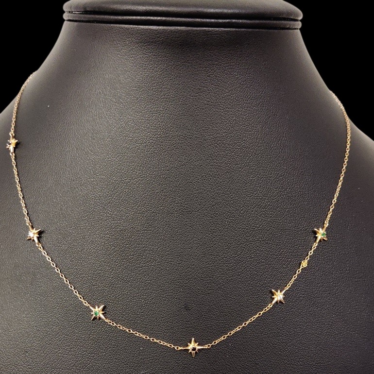 Kullattua hopeaa 925 kaunis siro kaulakoru tähtikoristein, pituus n 45 cm, ketjussa pari solmua