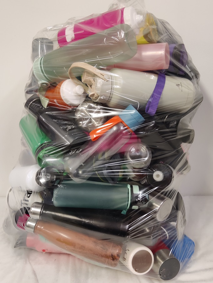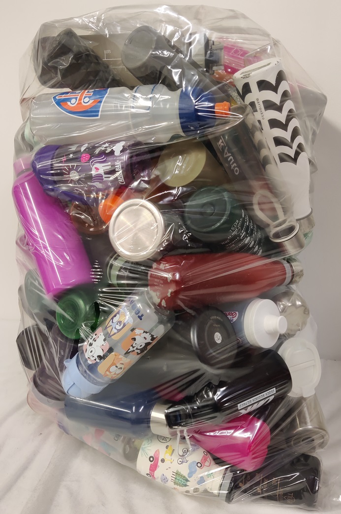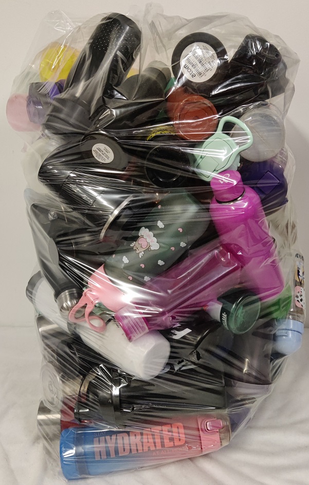 Säkillinen erilaisia juomapulloja