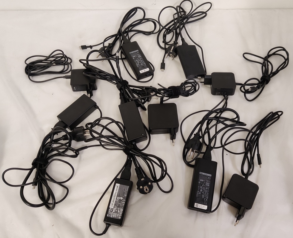 10 kpl tietokonelatureita, eri merkkejä, pääosin 65w
