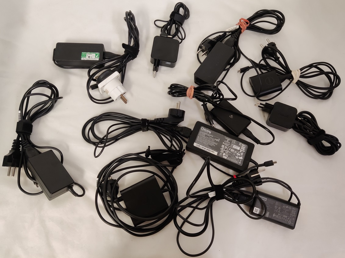 10 kpl tietokonelatureita, eri merkkejä, pääosin 65 w