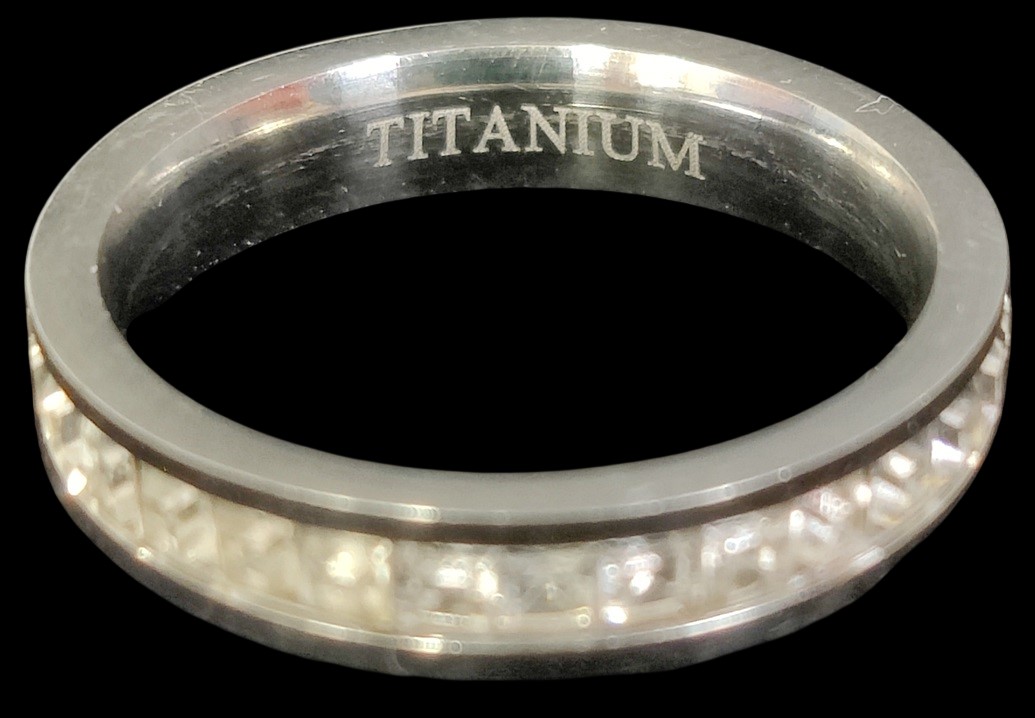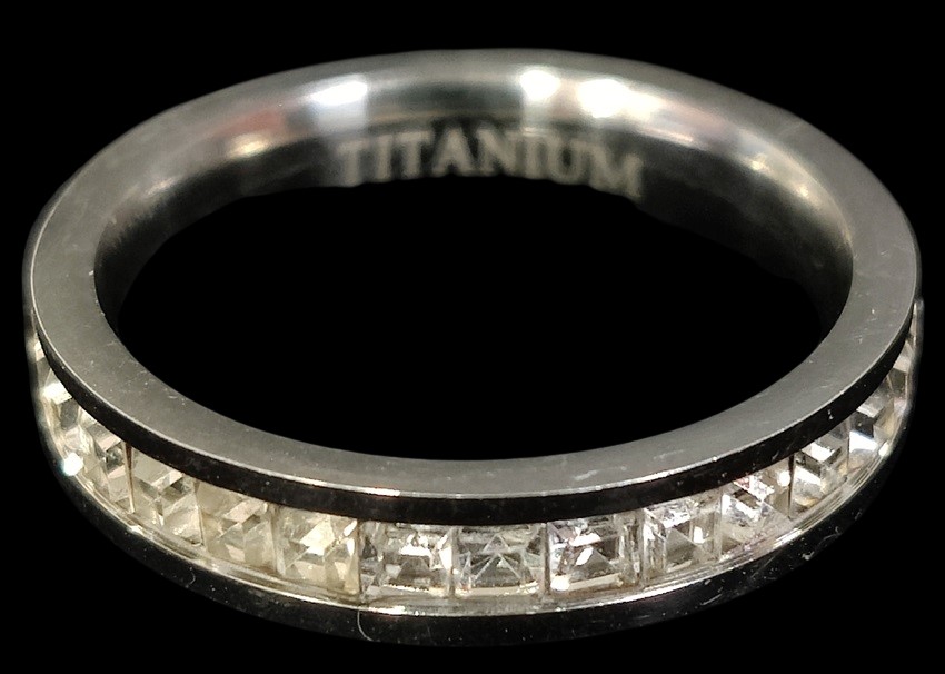 Titanium allianssisormus, pari koristetta pudonnut, koko n. 17,25, kaivertamaton