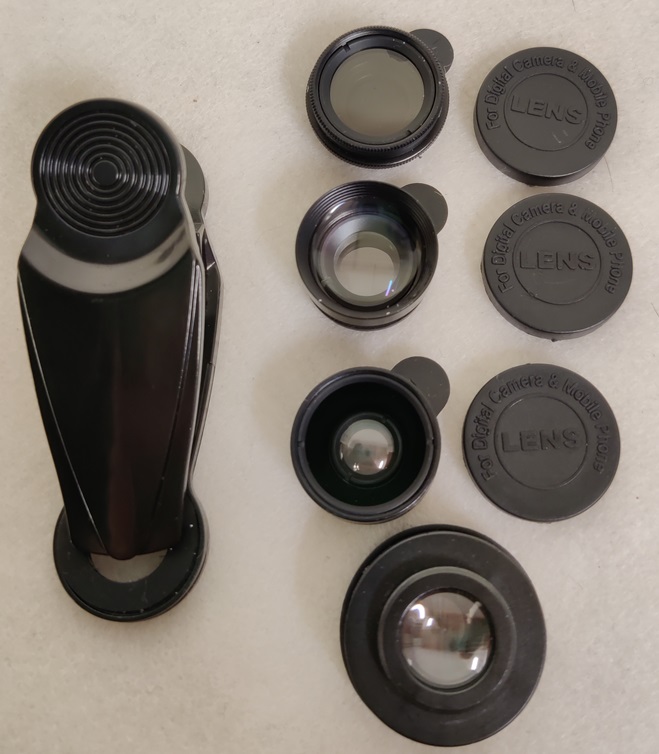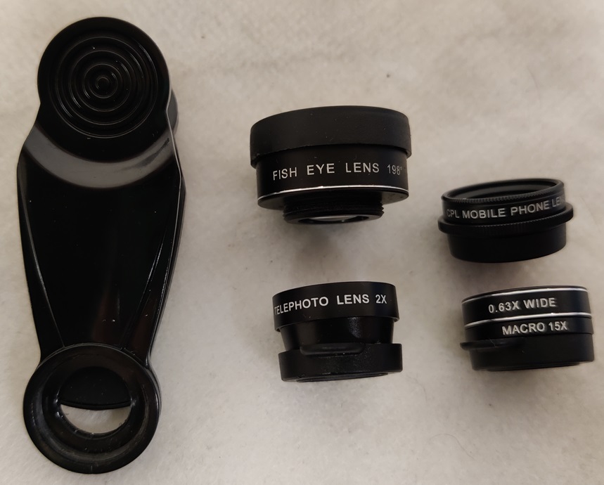 Linssisetti puhelimelle, yleiskäyttöinen klipsikiinnitettävä kameralinssisarja, 198 asteen kalansilmälinssi, 2X muotokuvaobjektiivi, CPL-polarisaattori, 0,63X laajakulmalinssi, 15X makro-objektiivi sekä kuljetuspussukka