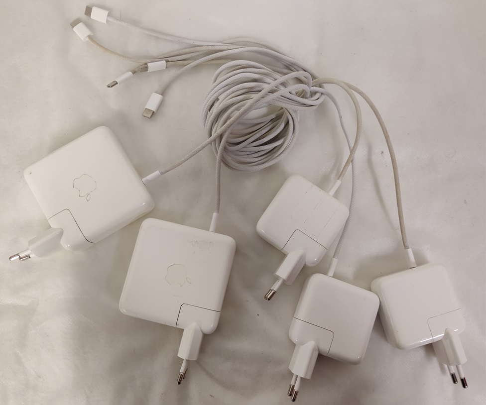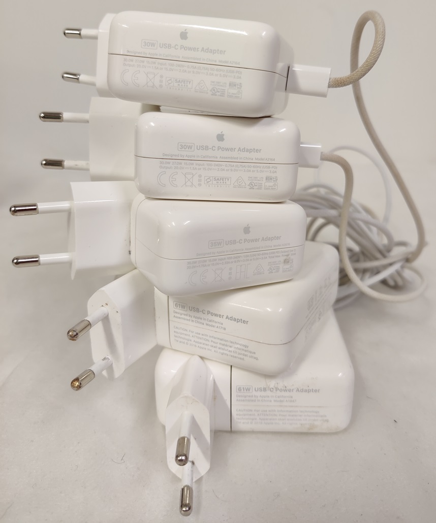 5 kpl Applen latureita; 2 kpl 61 w usb-c power adapter, 2 kpl 30 w ja 1 30 w, alkuperäisiä, kaikissa mukana uusi usb-c-c johdot