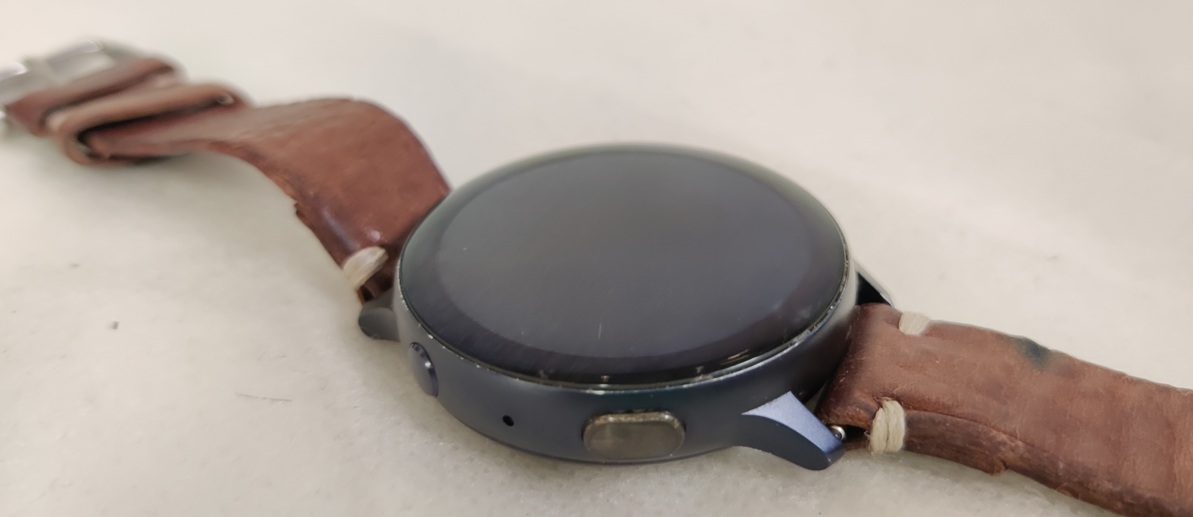 Samsung Galaxy Watch 4 active 2 älykello, MIL-STD-810G, ranneke nahkaa, pehmentynyt, ehjä mutta ehkä vaihdettava, lasi siisti ja naarmuton,ei laturia, testattu ja toimiva