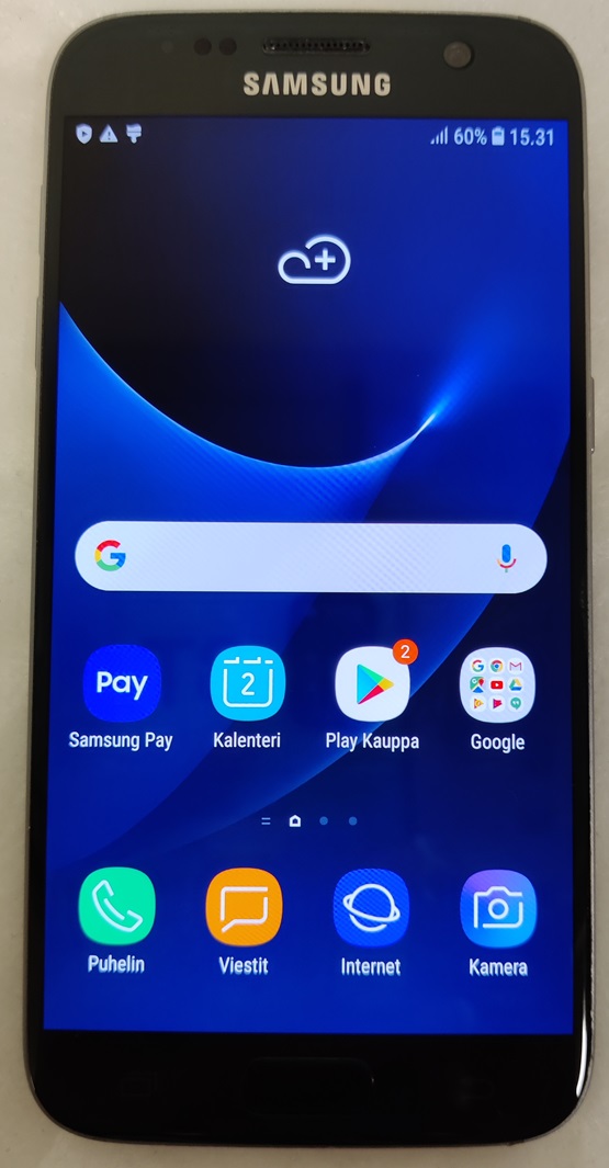 Samsung Galaxy S7, SM-G930F, 32 Gt, etulasi siisti, takalasissa säröä ja halkeamia, testattu ja toimiva