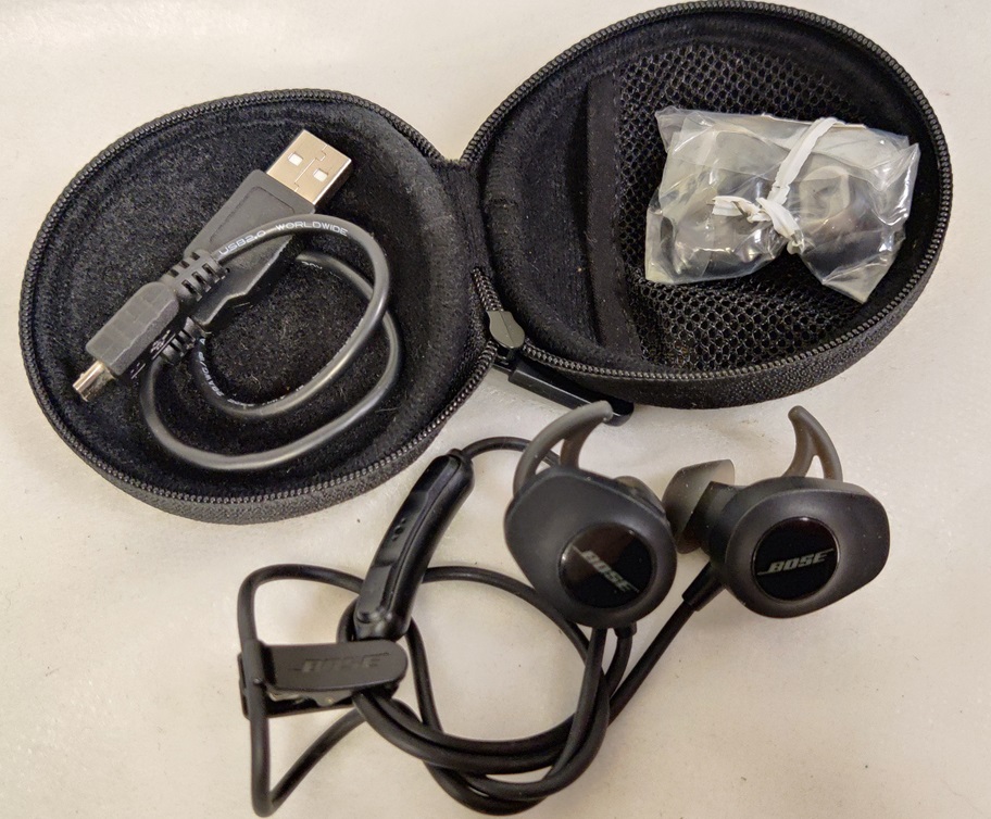 Bose SoundSport, Bluetooth nappikuulokkeet. Mukana säilytyskotelo, virtajohto ja uudet vaihtopäät. Testattu ja toimivat