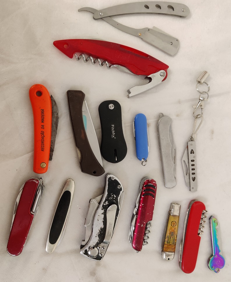 15 kpl erilaisia monitoimityökaluja, eri määrä teriä ja työkaluja, puukkoja, partaveietsiä yms sekalaista