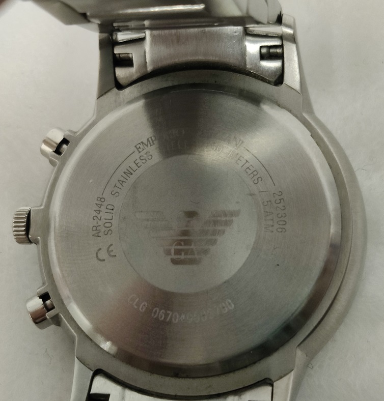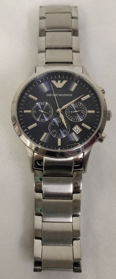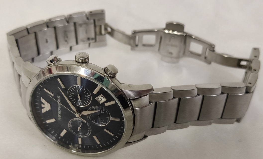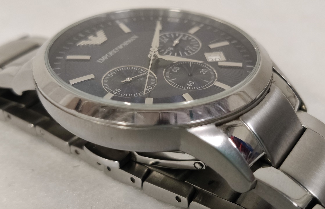 Emporio Armani Miesten Renato ar2448, kellon lasissa pari pientä naarmua, yksi pikkuviisari irti, pientä käyttökulumaa rannekkeessa, toimiva muilta osin