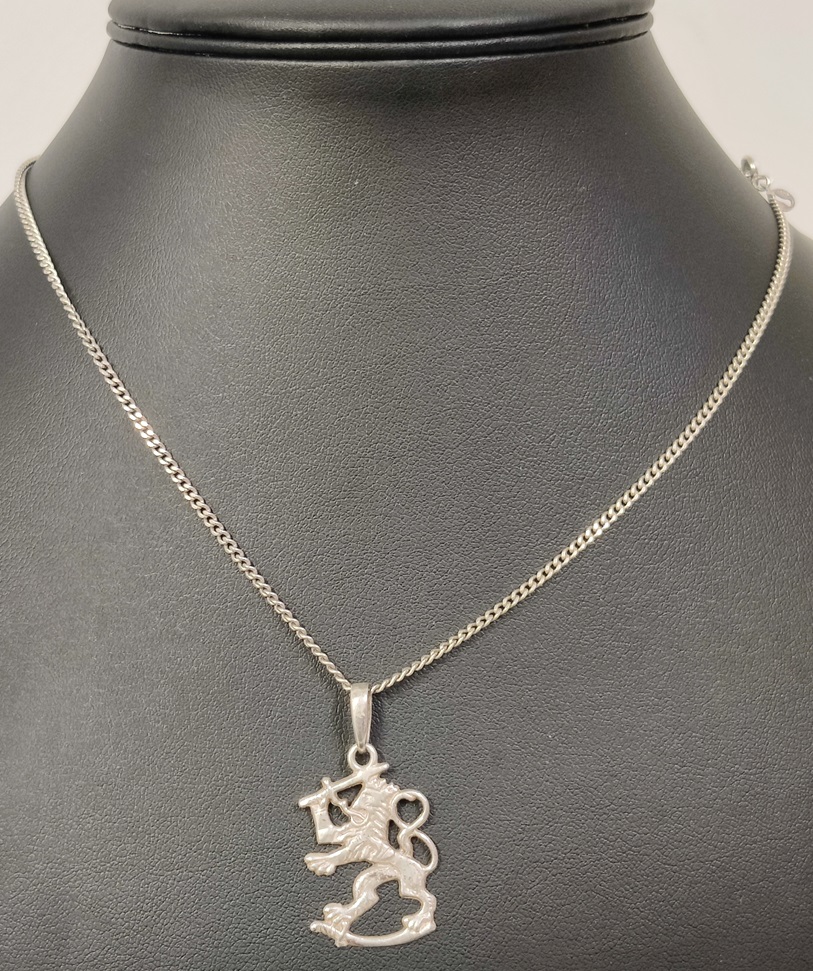 Hopeinen Leijona-riipus, n. 30 mm korkea, hopeinen 2 mm panssariketju, pituus 43 cm, tarkista lukko ennen käyttöä, hopean leima kaikessa 925
