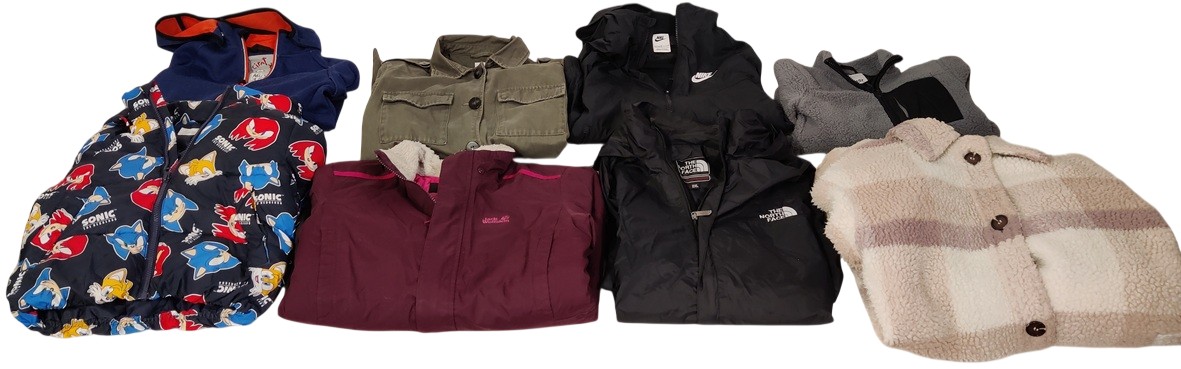 19 kpl erilaisia takkeja keväästä syksyyn, eri kokoja mm. Luhta, Helly Hansen, The North Face, Trekmates, H&M, Jack Wolfsakin, Only, Zara, McKinley, sis. Myös lasten takkeja