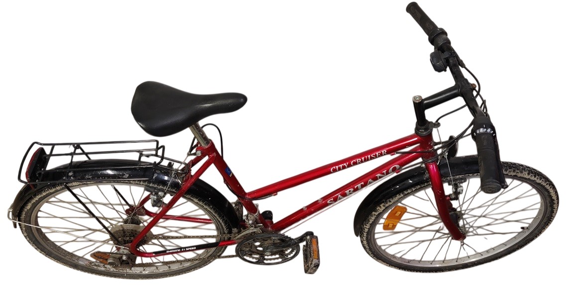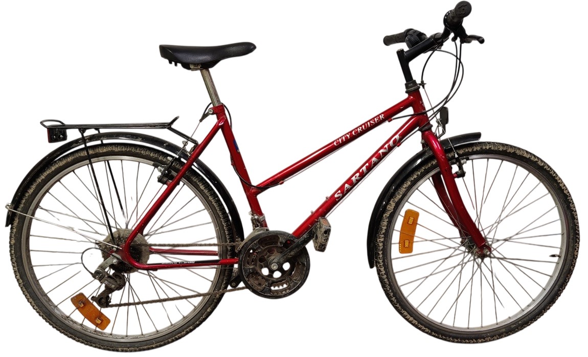 Naisten Sartano City Cruiser polkupyörä, 21 vaihdetta, 20 ", käsijarrut toimii, keväthuolto tehtävä, renkaat tarkistettava, etulokasuoja tarkisstettava, vaijerit ja ketjut tarkistettava, VAIN NOUTO