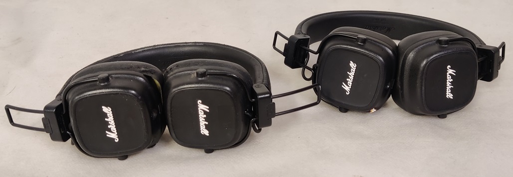 2 kpl langattomia sankakuulokkeita, Marshall Major IV, toisen pehmusteissa käyttökulumaa ja kontrollinuppi puuttuu, toiset siistikuntoiset, testatut ja toimivat