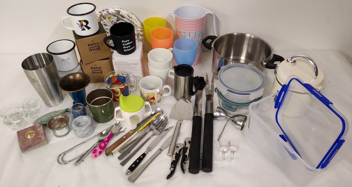 Urheilukassillinen sekalaista astiatavaraa yms