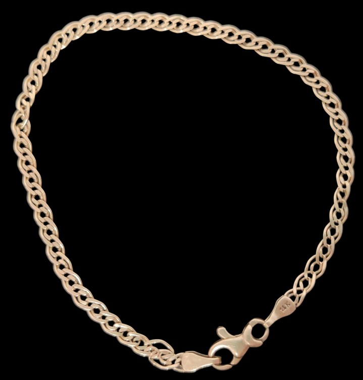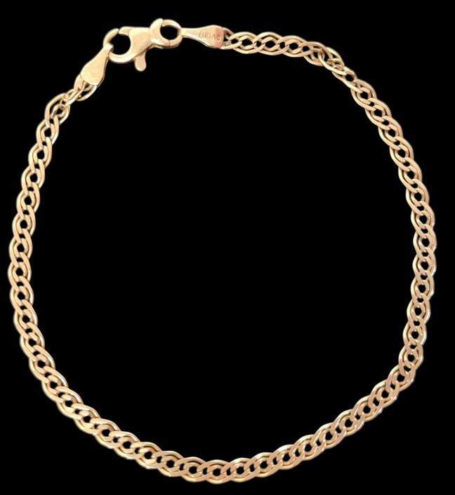 Kultainen Midas 14 K ranneketju, litistetty, pituus lukkoineen n. 21,5 cm, leveys n. 3,65 mm, kokonaispaino n. 4,2 gr