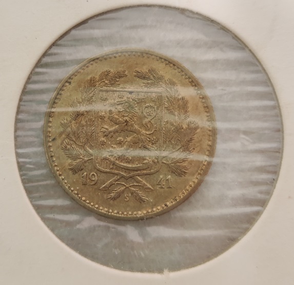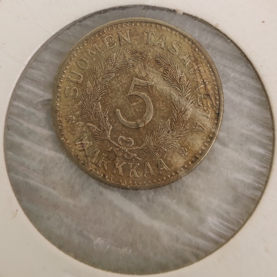 Suomen tasavalta 5 markan kolikko vuodelta 1941, kunto tyydyttävä