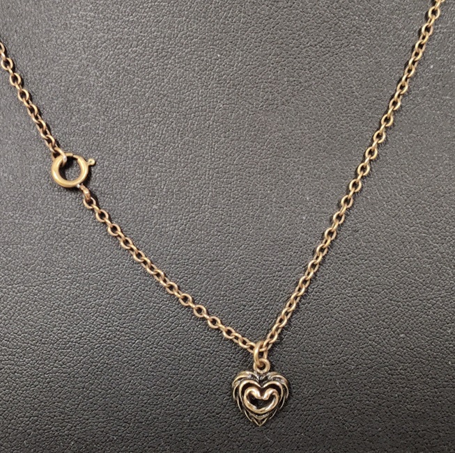 Pronssinen pieni Kalevala Koru Talon Sydän riipus ketjuineen, ketjun pituus säädettävä 44/47, riipuksen korkeus n. 1 cm