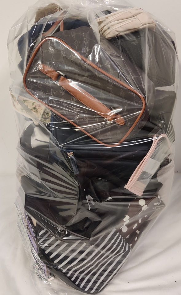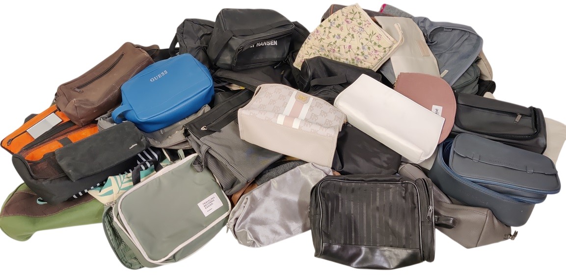 Säkillinen erilaisia toiletti- ja meikkilaukkuja ja muita pussukoita