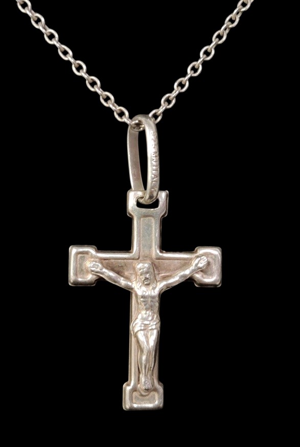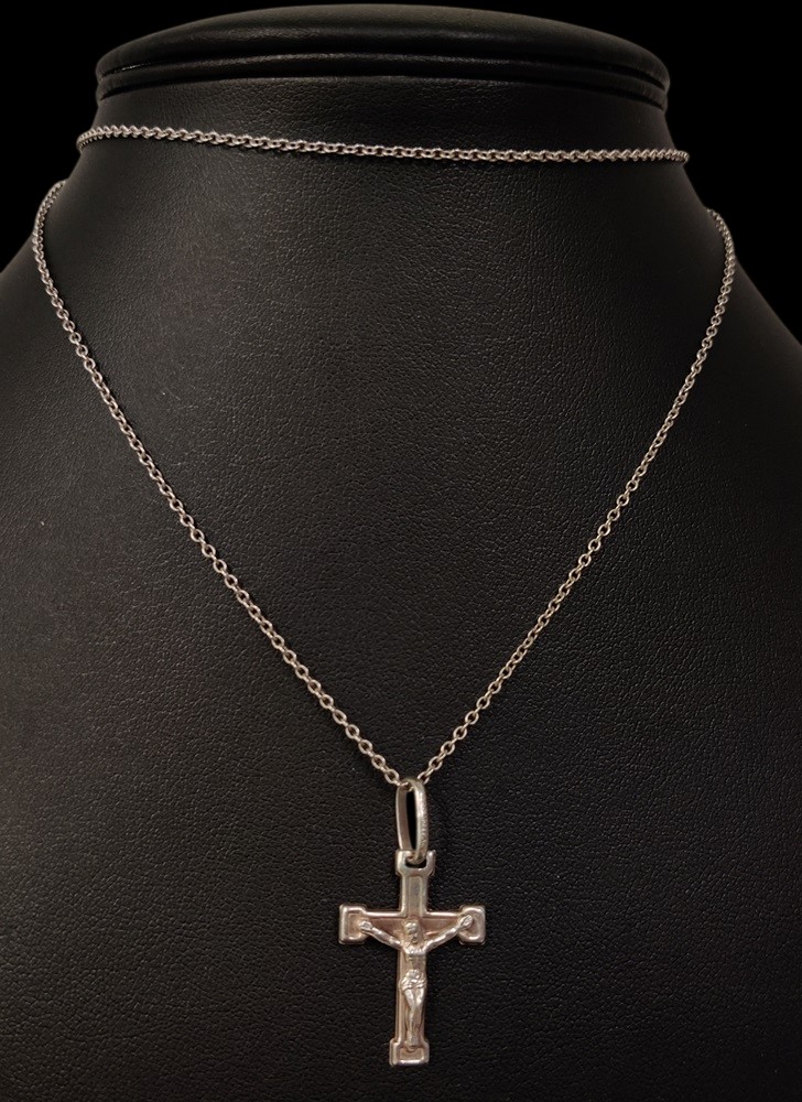 Hopeinen 925 ketju, noin 70 cm, hopeinen krusifiksi riipus, 925 leimalla