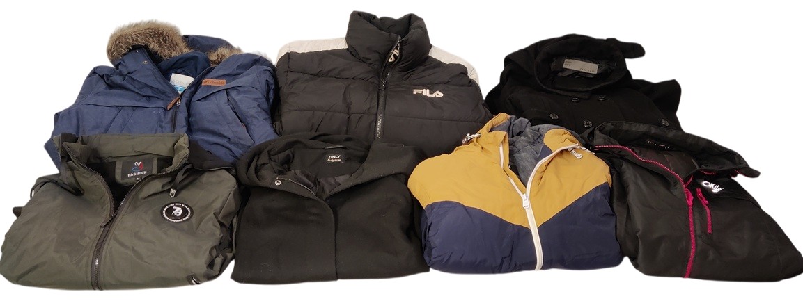 12 kpl erilaisia talvitakkeja mm. Zara Basic, Columbia, Skila Sport, Fila, Only, Everest, Future Sport, H&M