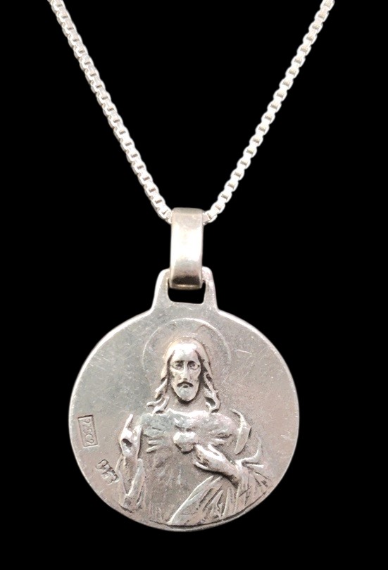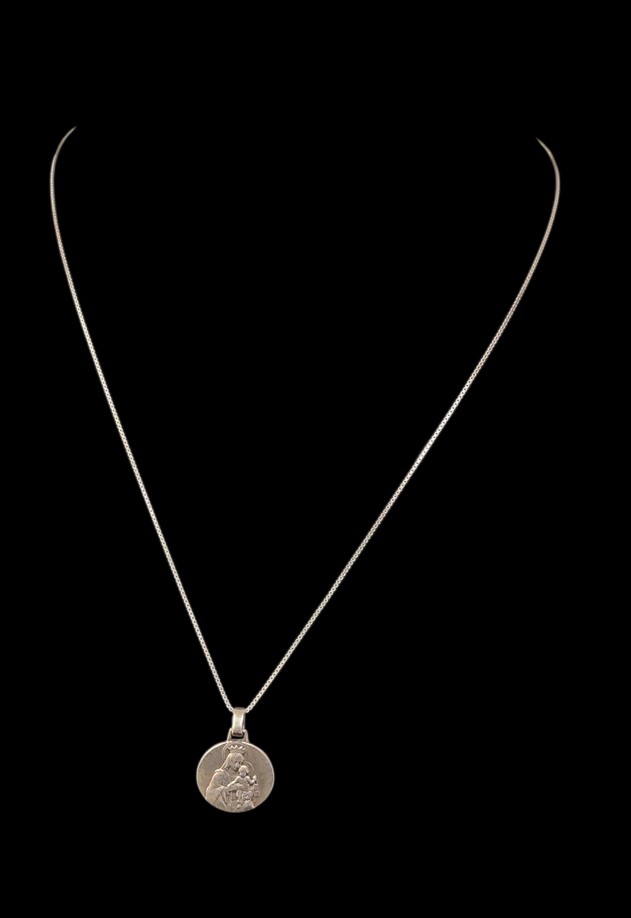 Hopeinen ohut venetsiaketju 45/50 cm, hopeinen Lady I G J Carmel Scapular riipus, kaksipuoleinen