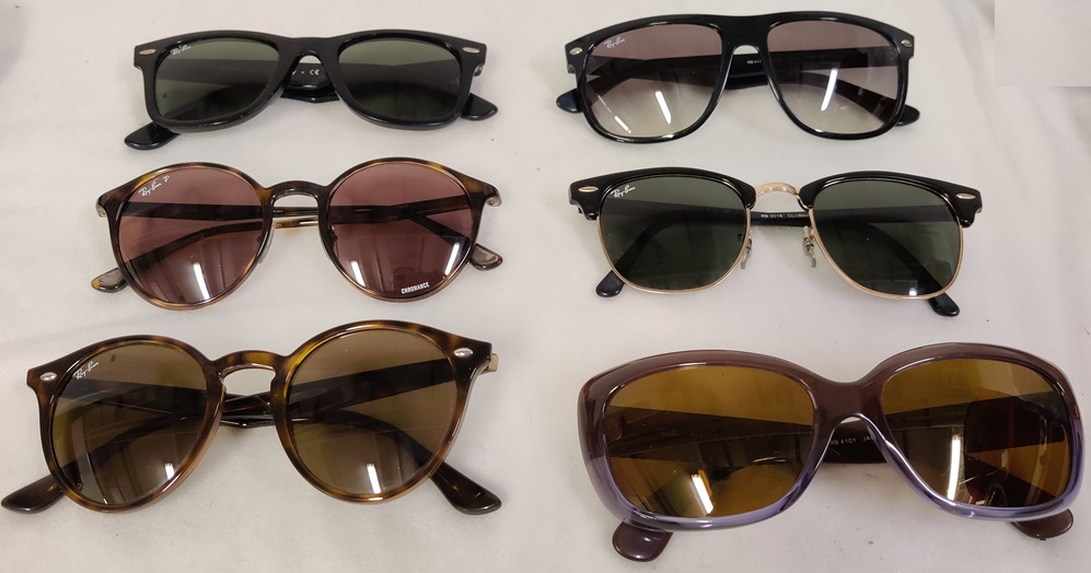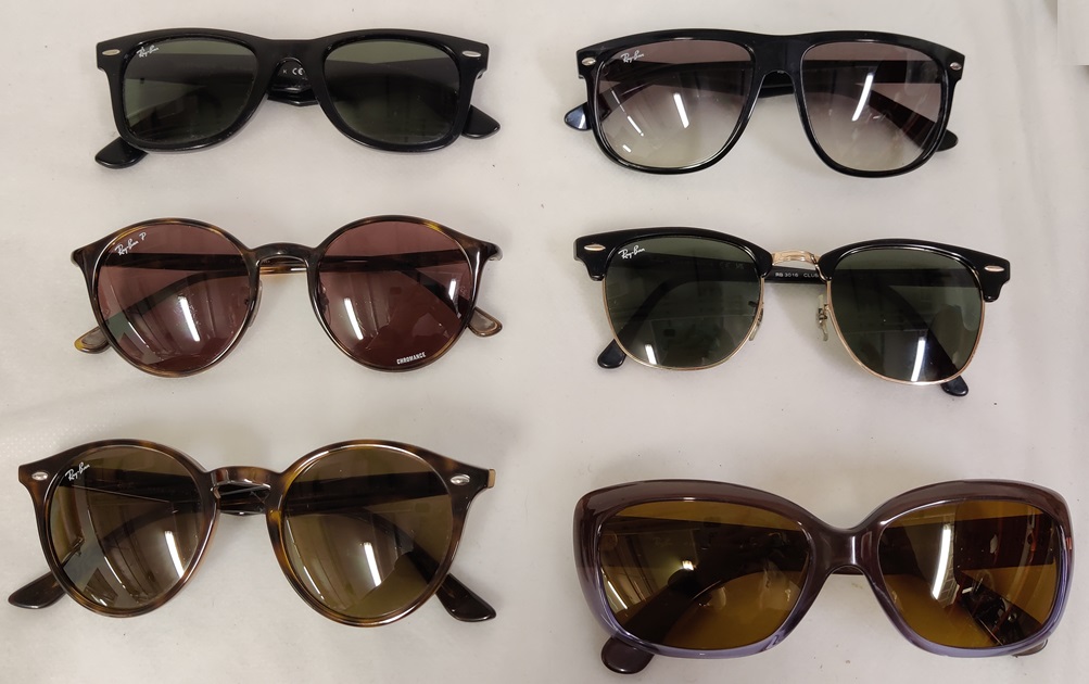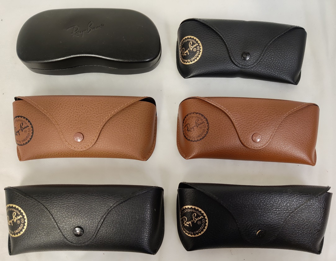 6 kpl RayBan aurinkolaseja koteloineen, käyttökulumaa