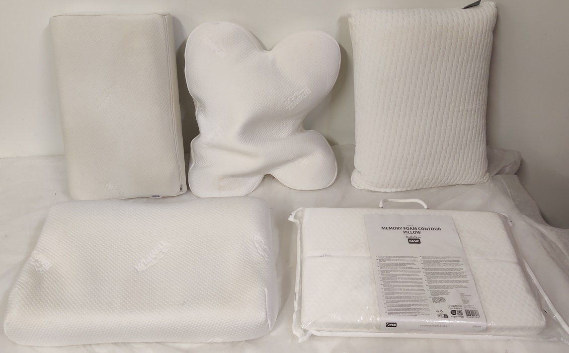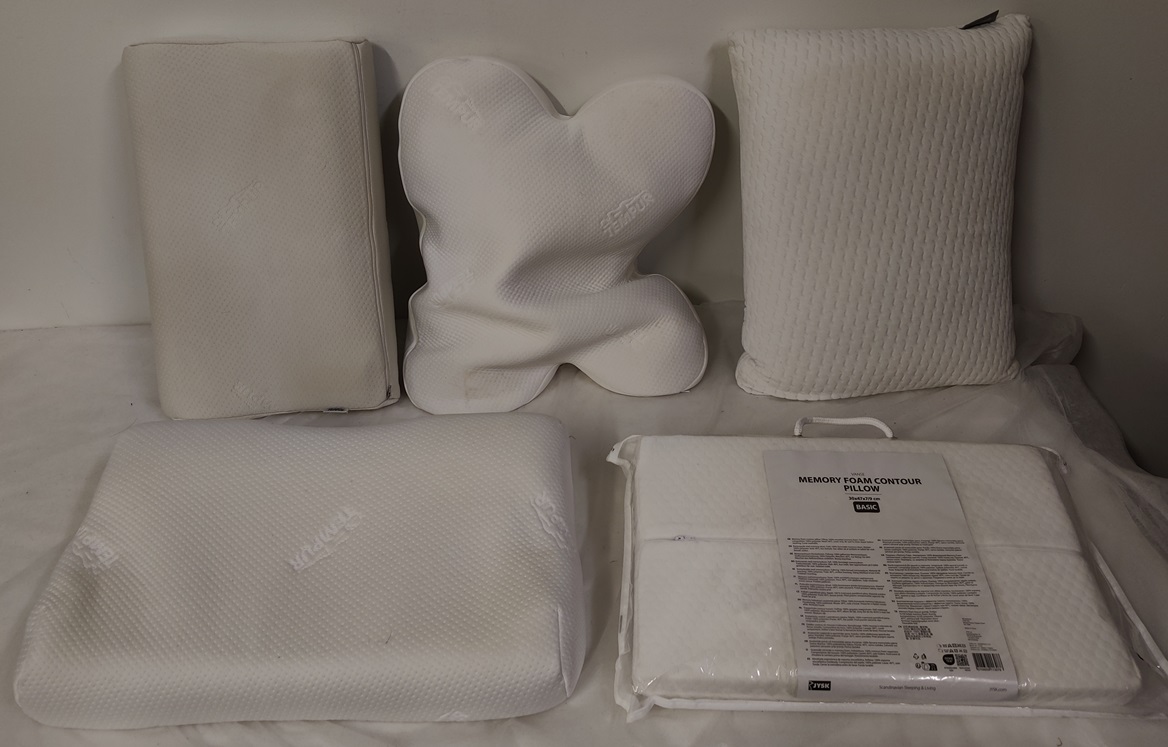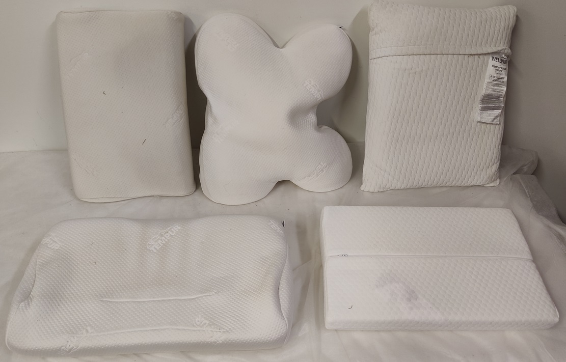 5 kpl memoryfoam tyynyjä, mm. Tempur ja Wellpur, päälliset kannattaa pestä ennen käyttöä, kuvien valotus hieman väärentää tyynyjen kuntoa