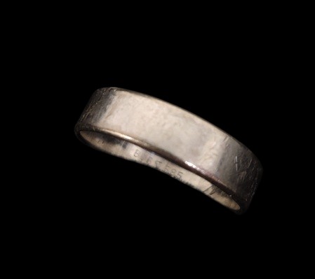 Valkokultainen sormus, BÖS 585, kaiverrettu, sileä, flakka, koko n 19,75, paino n. 4,4 gr