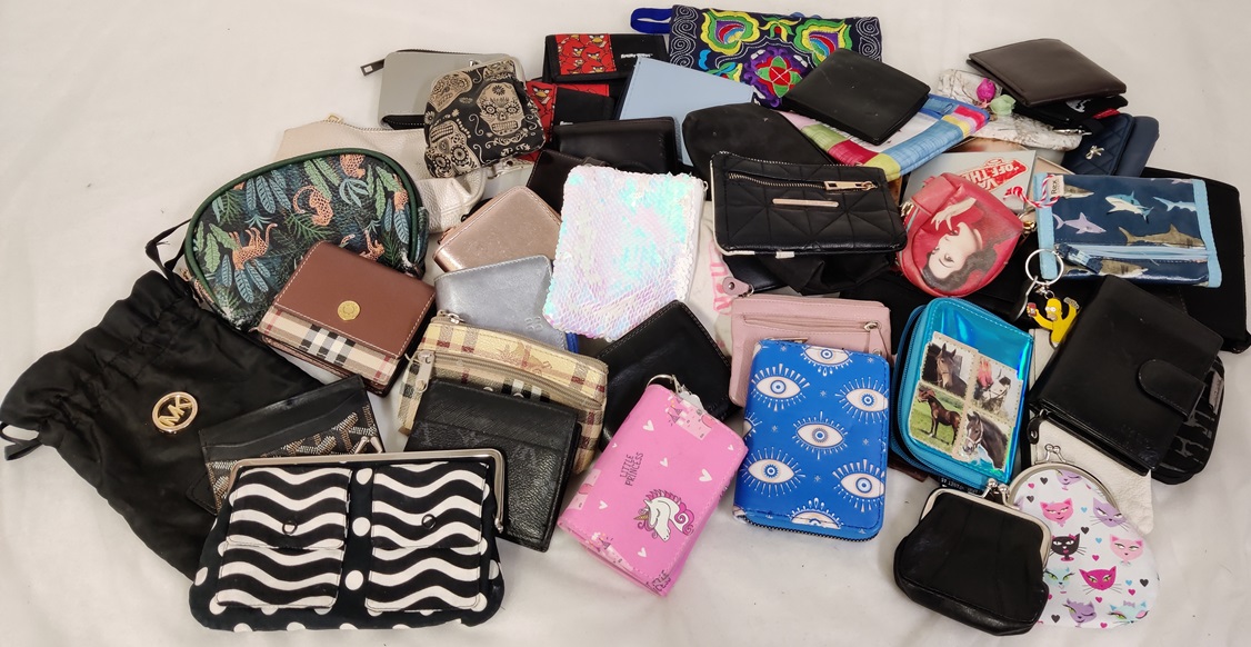 Repullinen erilaisia lompakoita, koteloita ja pussukoita