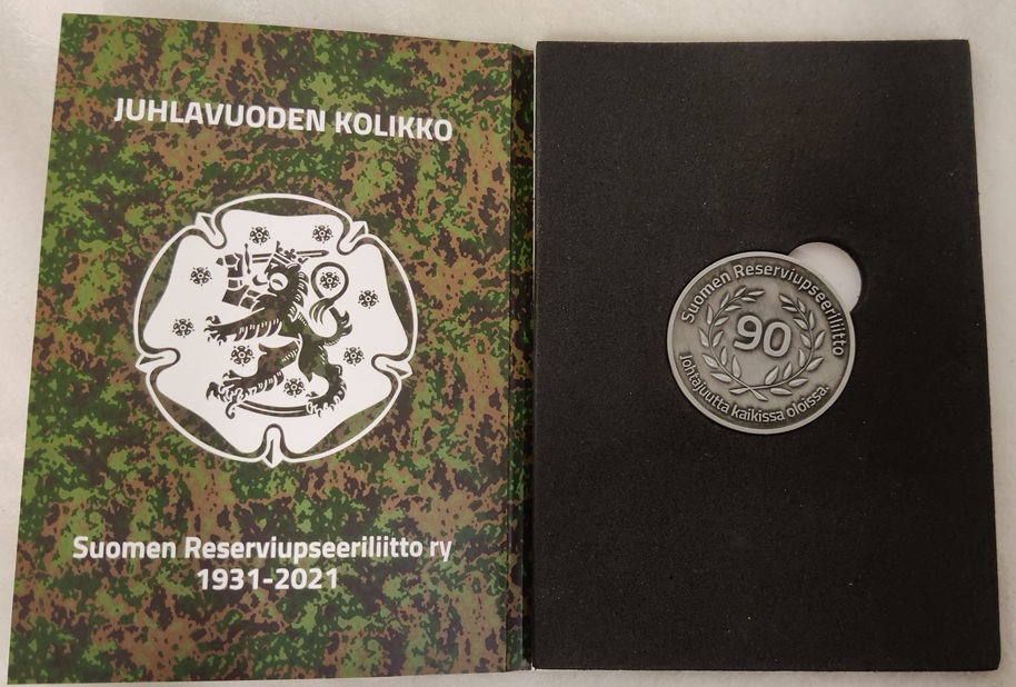RUL 90 vuotta -juhlavuoden kolikko kuorissaan
