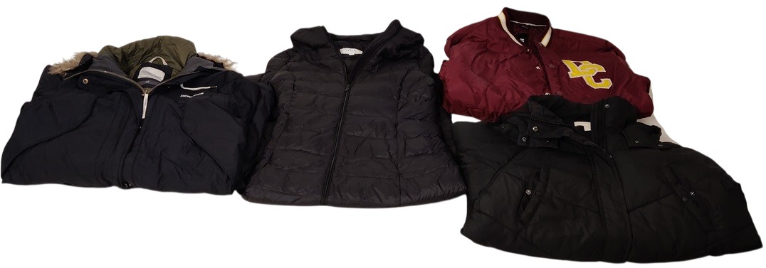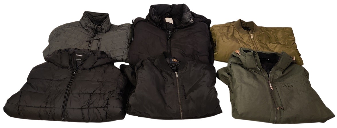 12 kpl erilaisia ja erikokoisia talvitakkeja, mm. Rukka, Monkl, Didriksons, Vila, Pull&Bear, H&M, Only&Sons, Ciraf (140)