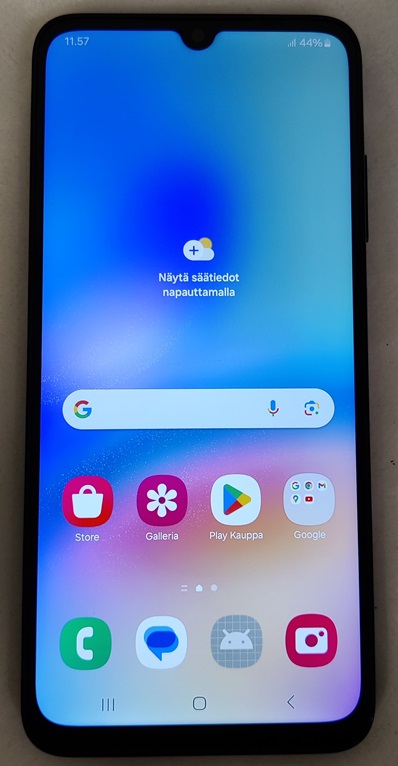 Samsung Galaxy A05s, SM-A057G/DSN, 64GB. Näytössä ja takalasissa on pieniä naarmuja ja käytön jälkiä, yleisesti siistissä kunnossa. Testattu ja toimiva