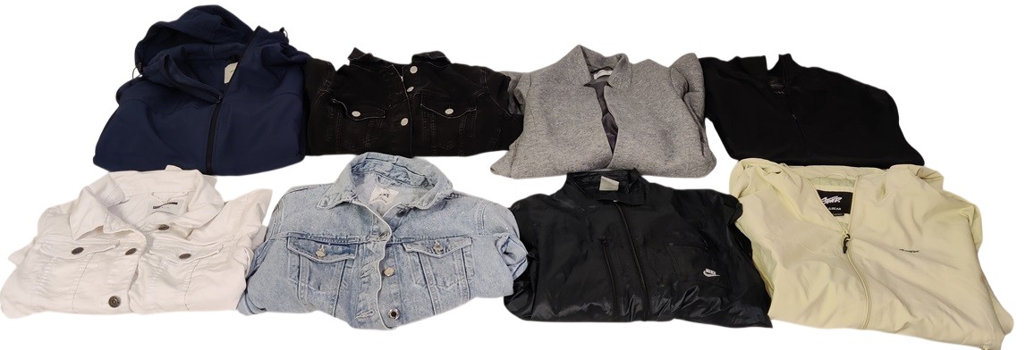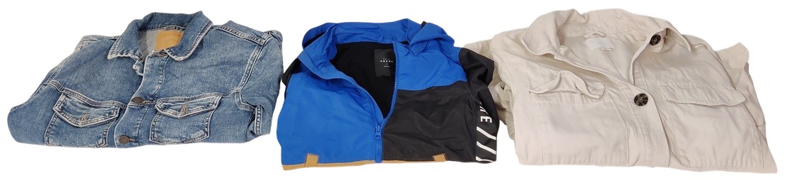 27 kpl erilaisia ei niin talvisia takkeja ja liivejä, keväästä syksyyn sopivia, monen eri kokoisia, mm; Icepeak, Helly Hansen, Everest, Urban Classics, 157, Mango, Turo, Whistler,m H&M, Sinsay, Noisy May, Only, Nike, Jack & Jones
