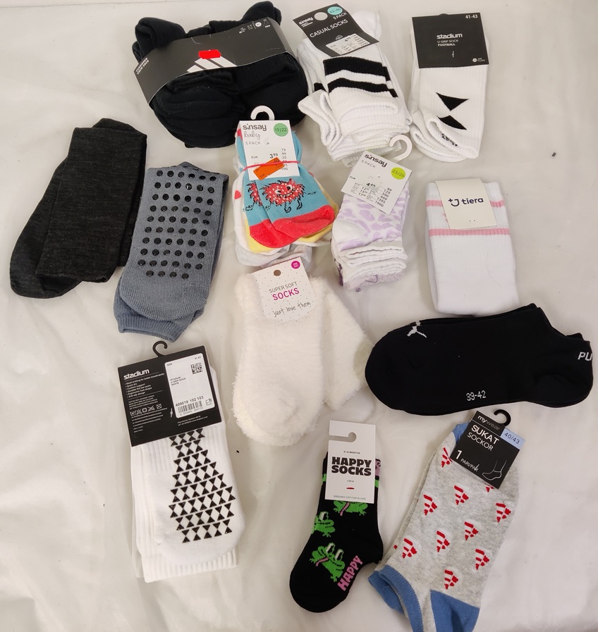 Erilaisia uusia sukkia, lapsille ja aikuisille, varrellisia ja varrettomia