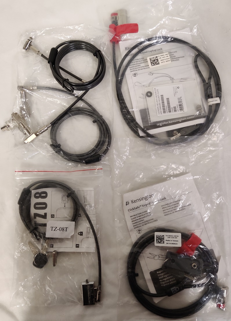 5 kpl tietokoneen lukitusvaijereita, mm. Kensington ClickSafe, https://www.verkkokauppa.com/fi/product/141357/Kensington-ClickSafe-5mm-lukko