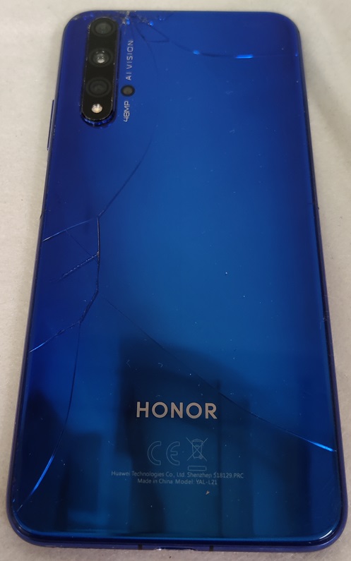 Huawei Honor Nova 5T, YAL-L21, 128 Gt, etu- ja takalaseissa paljon halkeamia ja säröjä, testattu ja toimiva