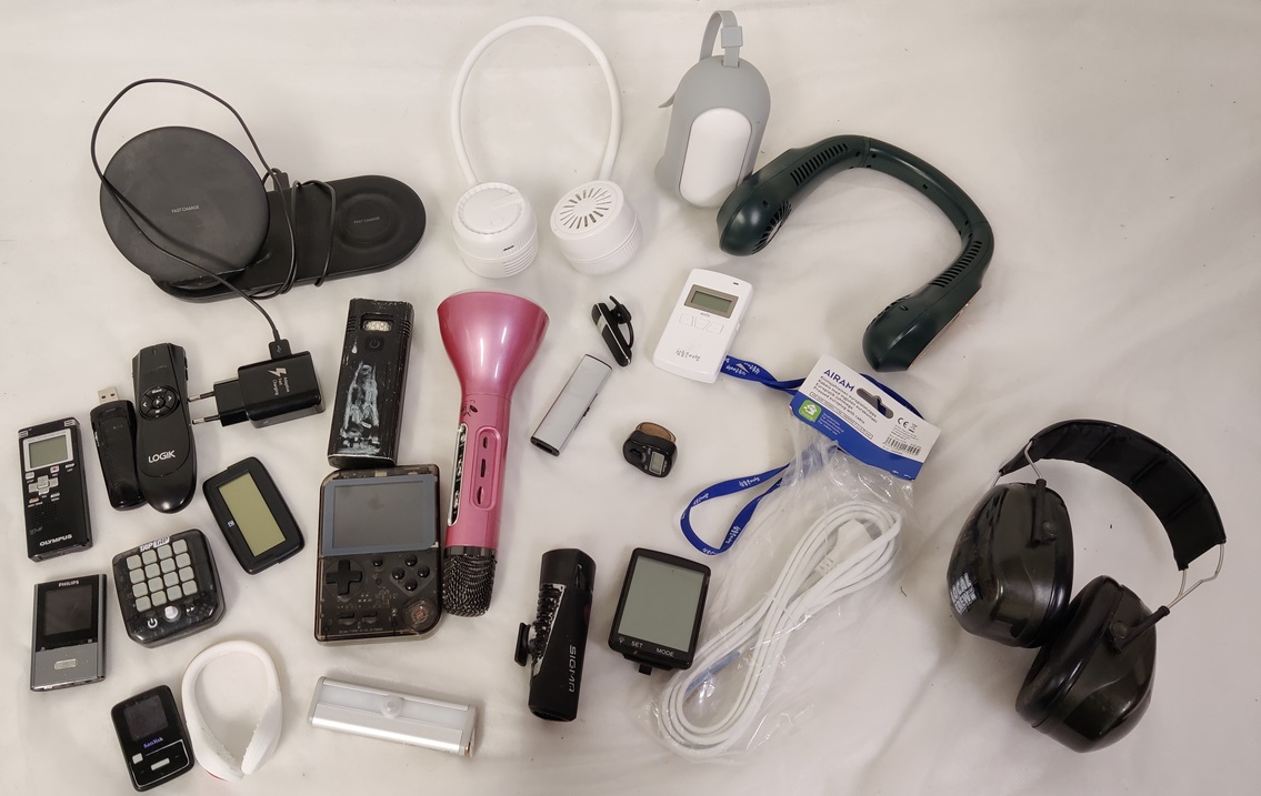 Sekalaista elektroniikkaa, mm. kaulatuulettimia, univalo musiikilla, Taptap peli, pyörän valoja yms