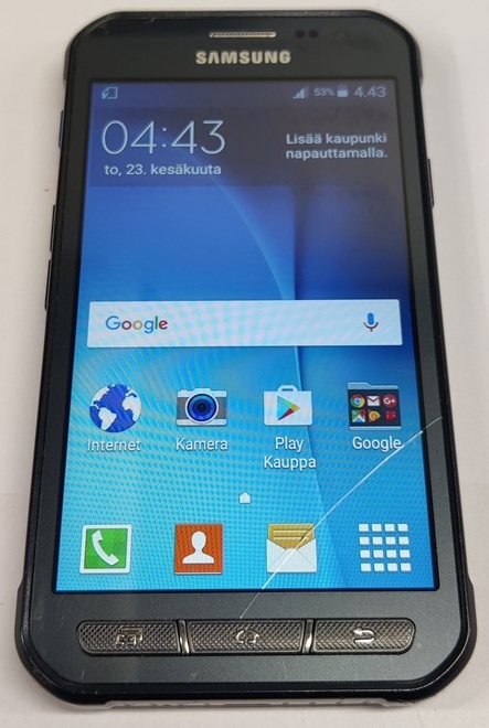 Samsung Galaxy Xcover3, SM-G388F, 8GB. Näytössä muutama halkeama, ja takakannessa on käyttökulumaa. Testattu ja toimiva
