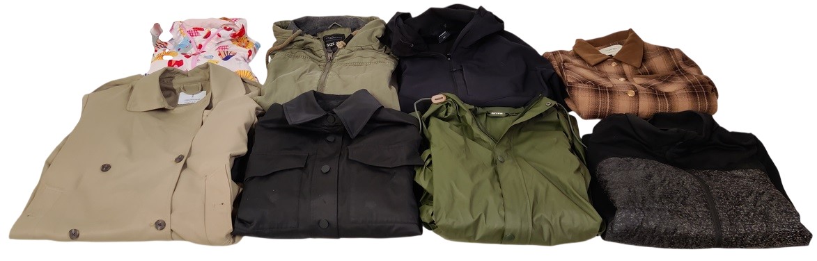 21 kpl erilaisia takkeja kevään kylmistä syksyn viileisiin keleihin, koot vaihtelee S-XXL välillä, joitakin lasten takkeja, merkkejä mm. Everest, Stradivarius, luhta, Adidas, SOC, FSBN, The North Face, Lasten 140 Didrikson