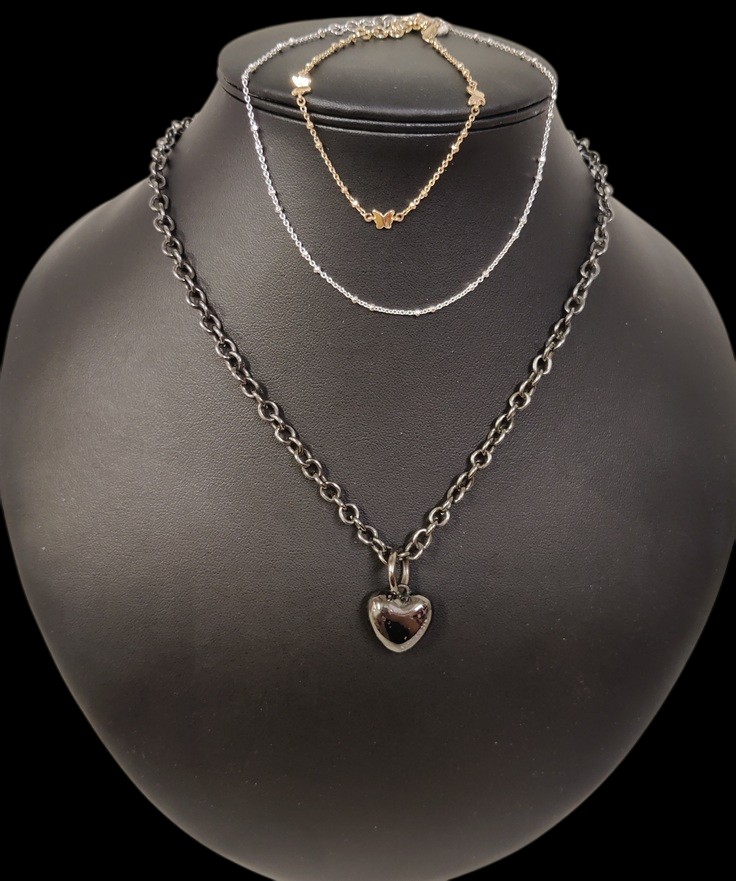 Snö of Sweden Black Heart kaulakoru, Snö of Sweden nilkkaketju, säädettävä, Snö of Sweden perhosaiheine rannekoru, sääedttävä