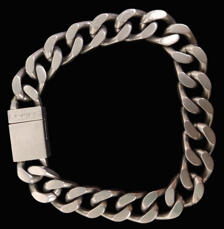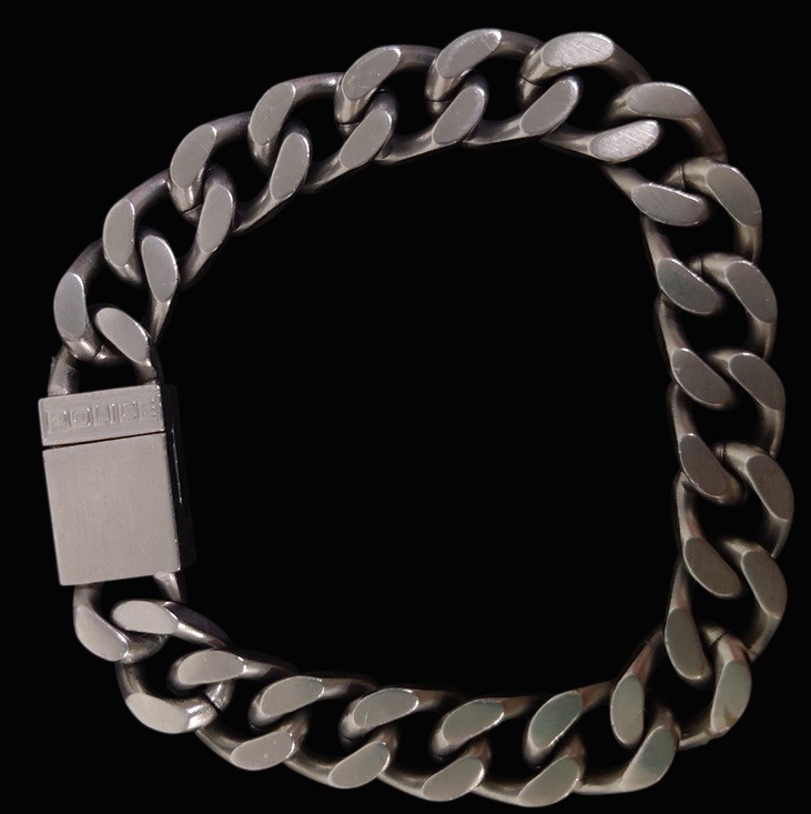 Teräksinen Police rannekoru magneettilukolla, pituus noin 22 cm, paksu panssariketju