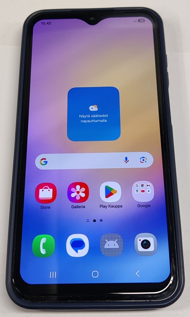 Samsung Galaxy A25 5G, SM-A256B/DSN, 128GB. Näyttö ja takakansi ovat hyvässä kunnossa. Mukana myös näytön panssarilasi ja suojakuori. UUDENVEROINEN! Testattu ja toimiva