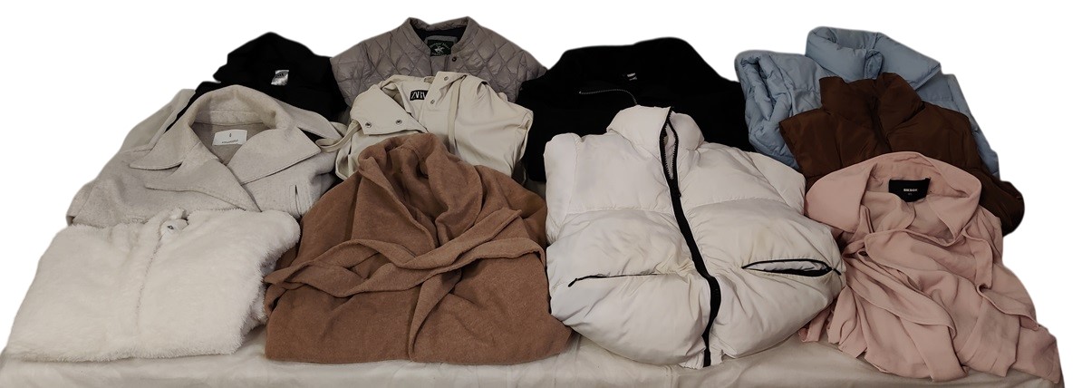11 kpl nuoren naisen takkeja, koot xs-s, osa on oversize mallia, takeista 2 on toppaliivejä, merkkejä, mm Massimo Dutti, Zara, Stradivarius, BikBok