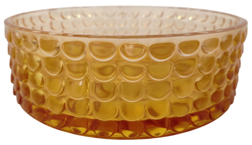Eero Rislakki taidelasi Nina-kulho Amber eli meripihkan värinen Eero Rislakin suunnittelema Nina-makeiskulho, 19,5 cm halkaisija, pyöreä, Riihimäen lasi, valmistusvuosi 1690-1970 -luvulla, kunto erinomainen kuvattu lähtöhinta 25
