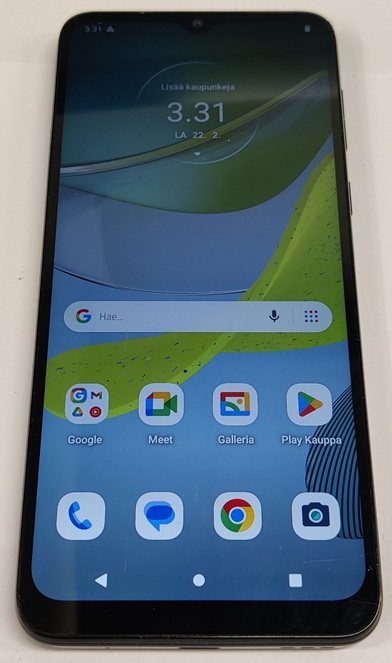 Motorola Moto E13, XT2345-3. 64GB. Näytössä on naarmuja. Takakannessa vähäistä käyttökulumaa. Testattu ja toimiva