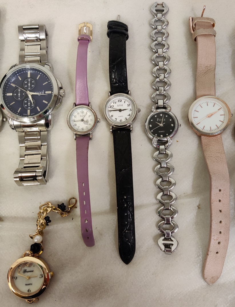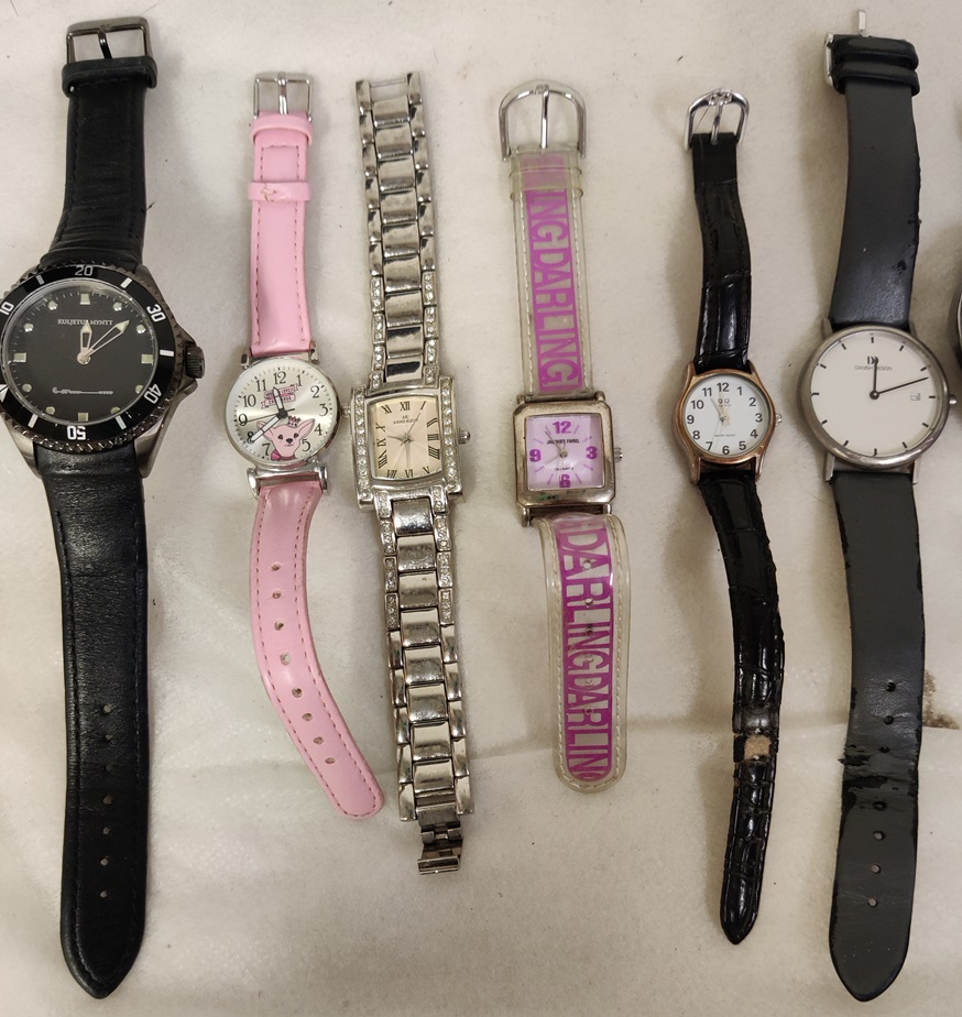 15 kpl erilaisia kelloja, mm. Leijona, Regal, Fore, o.n.e, Q&Q