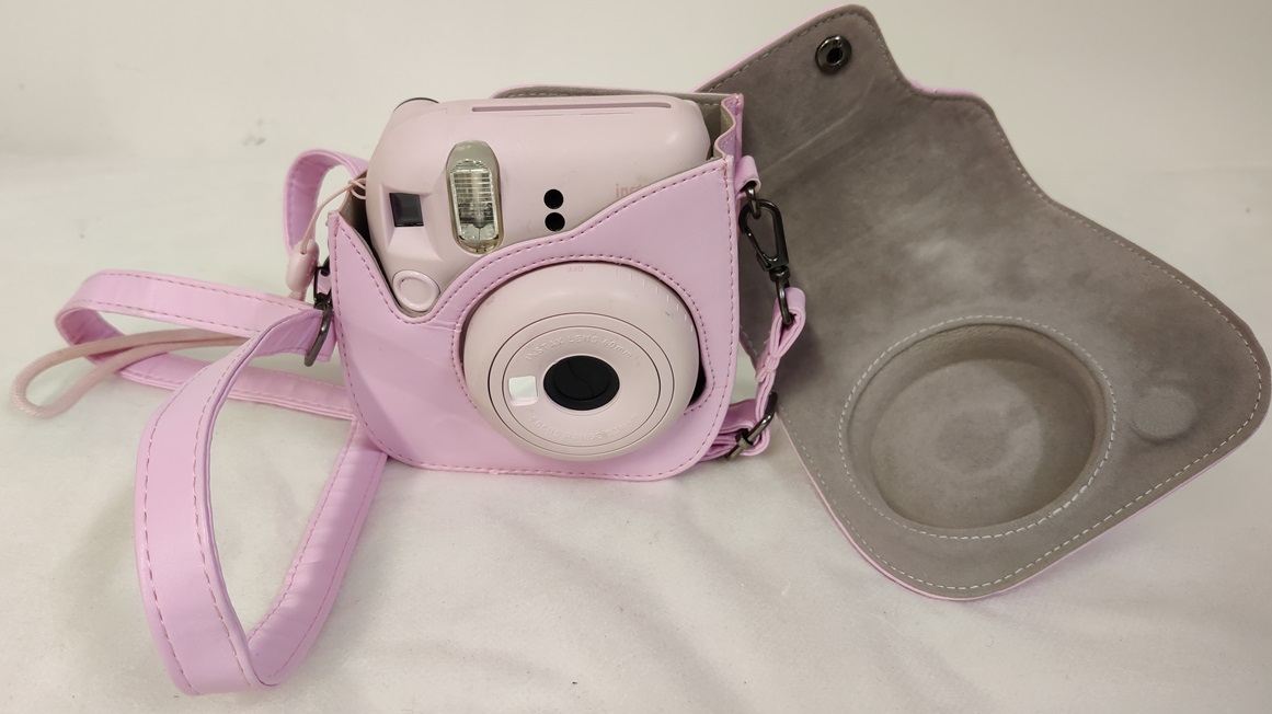 Fujifilm Instax Mini 12, Testattu ja toimiva, kuvanlaadusta ei takuuta, sisällä pari paperia jäljellä ja testattu, kuva laukun takataskussa. Ei tiedä kuinka huonoa ja vanhaa filmiä sisällä, uudella voi olla parempi, ei takuita, ei uutta filmiä millä testata.