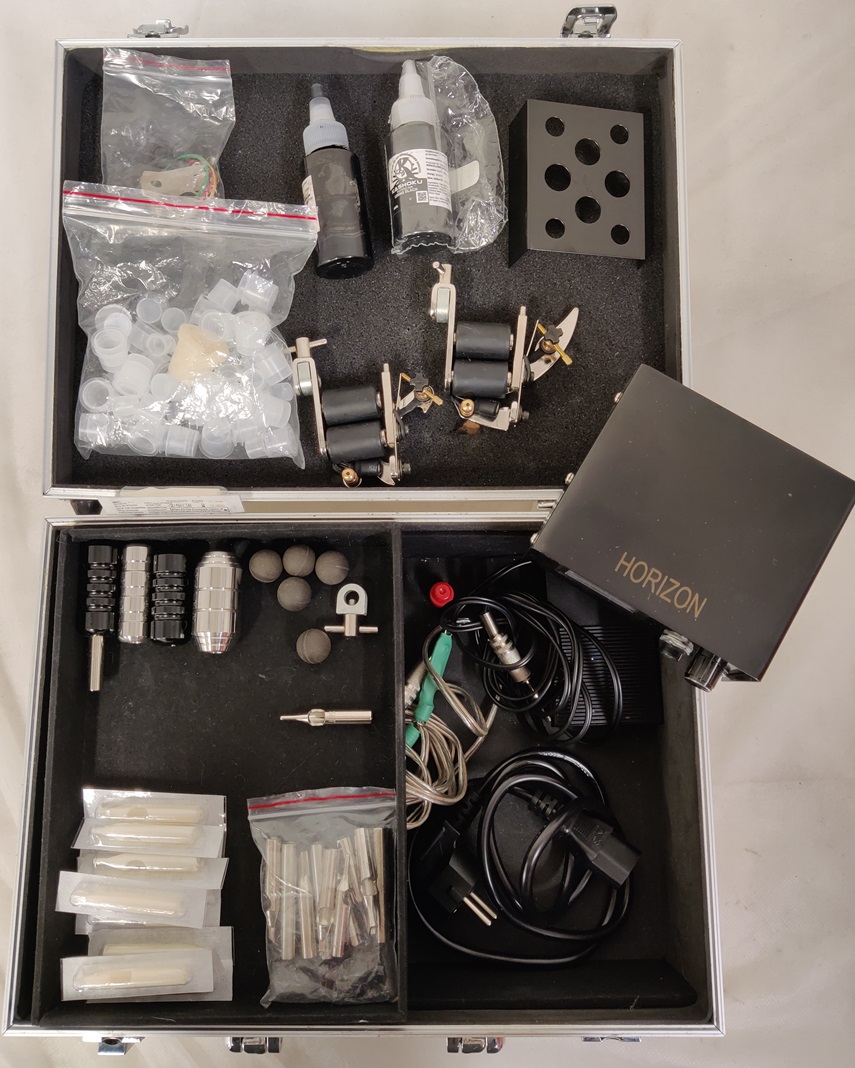 Tatuointisetti, voi puuttua osia, salkussa kuvan tavarat ja tarvikkeet