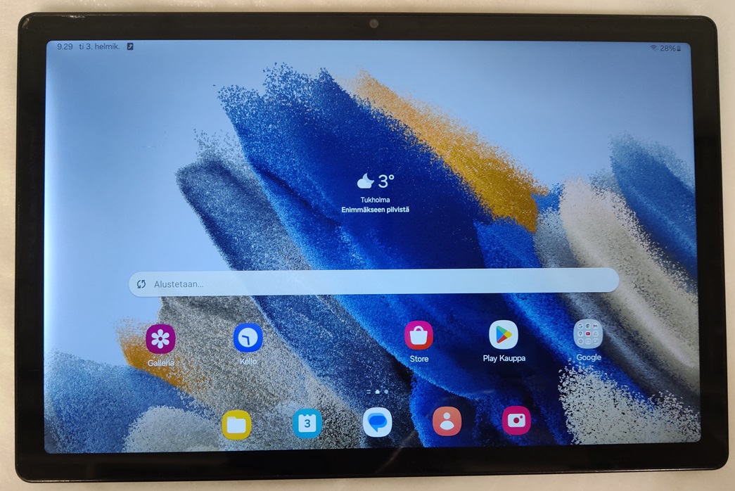 Samsung Galaxy Tab A8, SM-X200, 32 Gt, etulaissa yhdessä kulmassa pieni halkeama, muutoin siisti, testattu ja toimiva