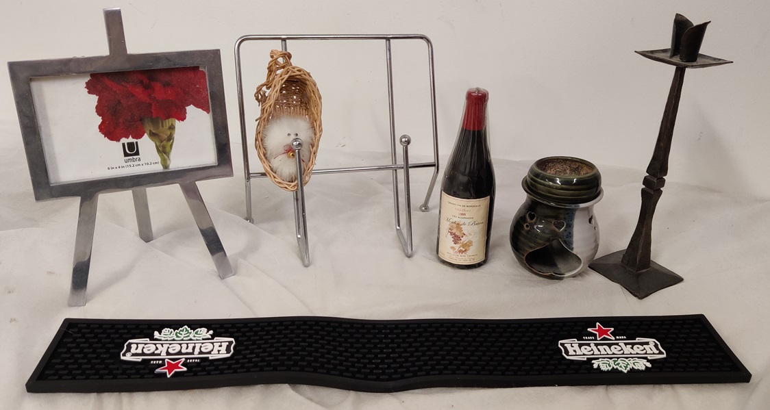 Sekalaista tavaraa, mm. kirjateline esim reseptikirjalle kokkaillessa, valokuvakehys (uusi), sepän takoma kynttilänjalka, drinkkimatto (uusi!), yms... sis. UUTTA!
