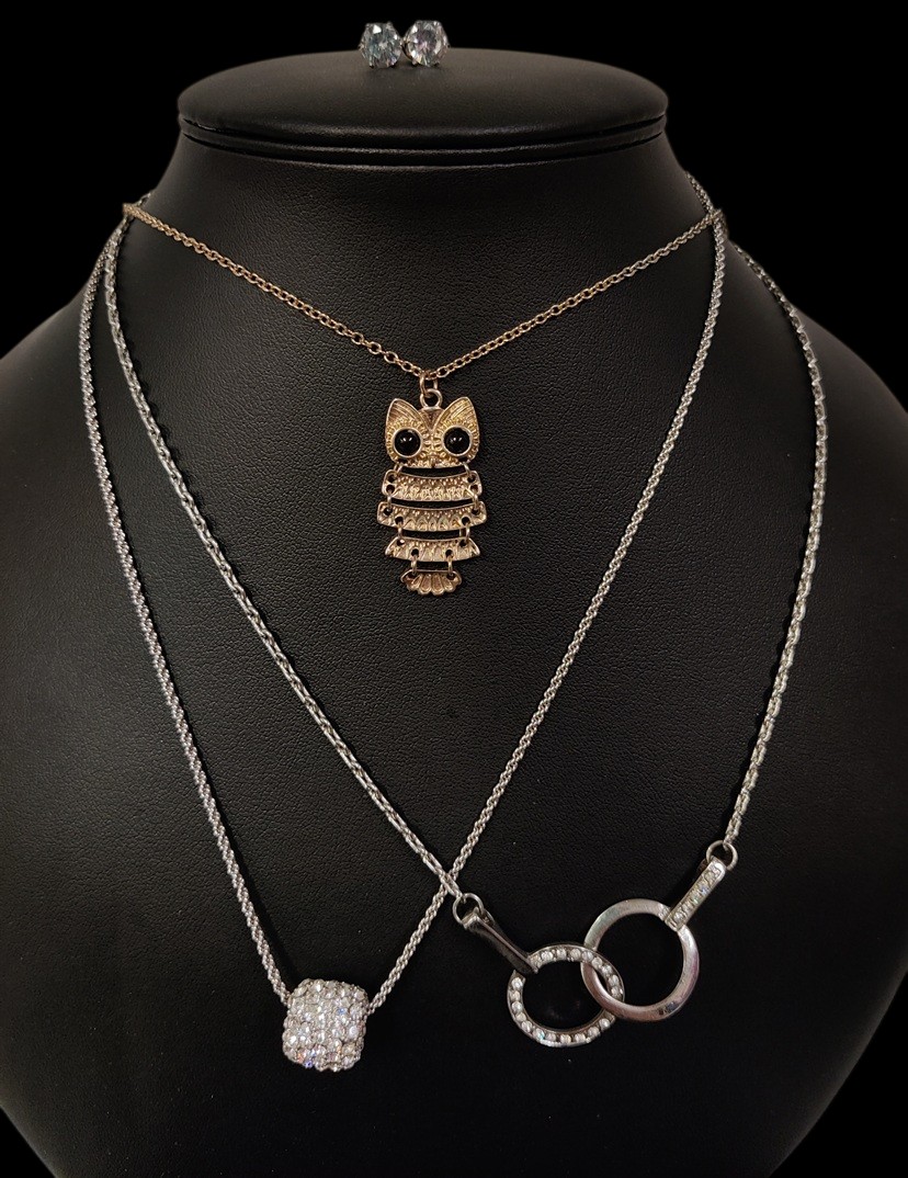 3 kaulakorua ja korvikset